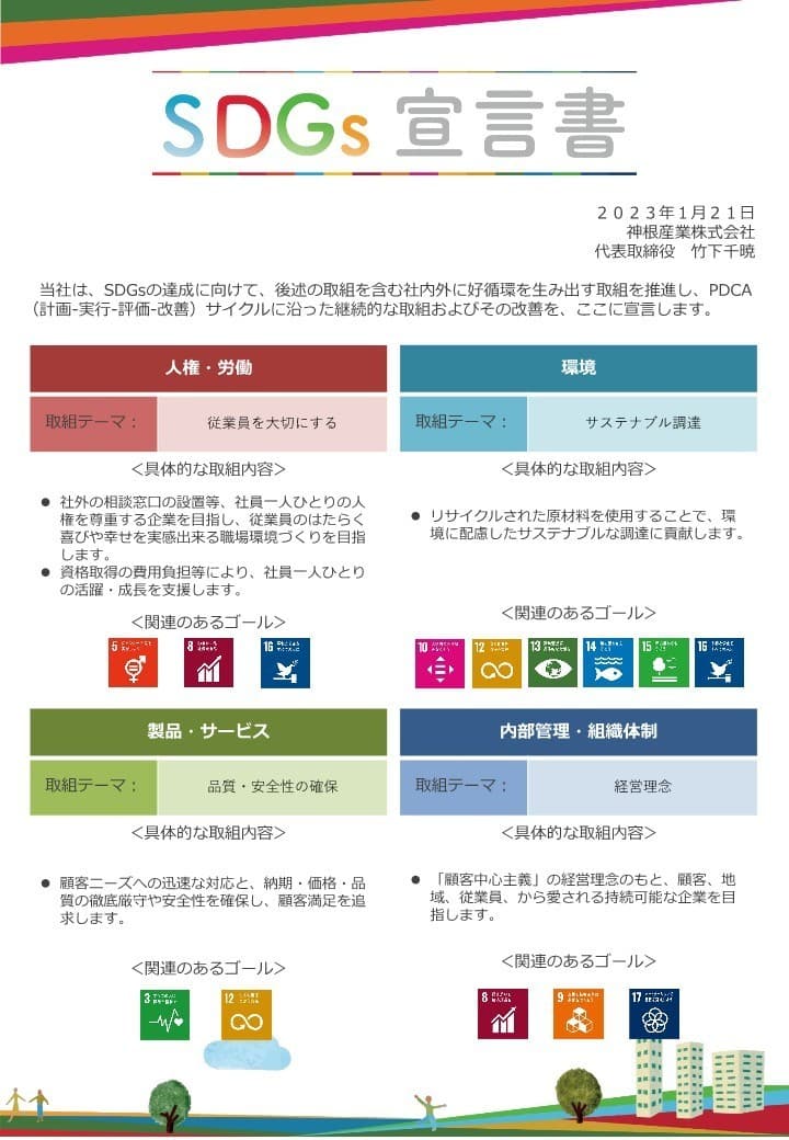当社は、SDGsの達成に向けて後述の取組を含む社内外に好循環を生み出す取り組みを推進し、PDCA(計画・実行・評価・改善)サイクルに沿った継続的な取組およびその改善をここに宣言します。